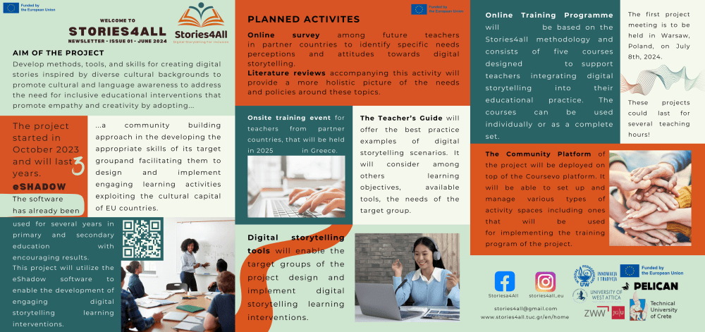 - Online školicí program bude vycházet z metodiky Stories4all a bude se skládat z pěti kurzů určených na podporu učitelů, kteří začleňují digitální vyprávění příběhů do své vzdělávací praxe. Kurzy lze využít jednotlivě nebo jako kompletní sadu.