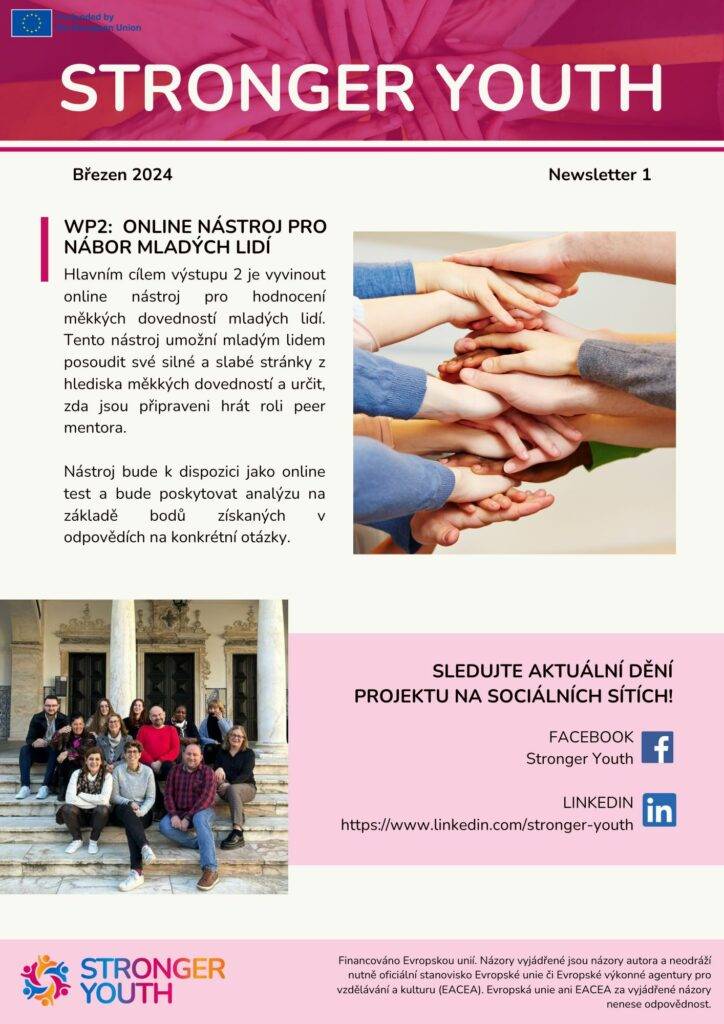 V dnešní době se mladí lidé potkávají s množstvím nových překážek. Neustále se měnící prostředí a větší nároky vyvíjí tlak na teenagery. Jedinci s nedostatečnými sociálními dovednostmi se poté dostávají mimo komunitu. A právě projekt „Stronger Youth – Empowering young people social competences and soft skills through peer mentoring“ si klade za cíl posilovat emoční stabilitu mladých s důsledkem sociálního začlenění.
