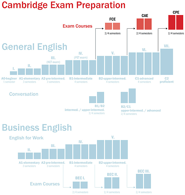 • mezinárodní zkoušky z všeobecné angličtiny (Cambridge KET, PET, FCE, CAE),