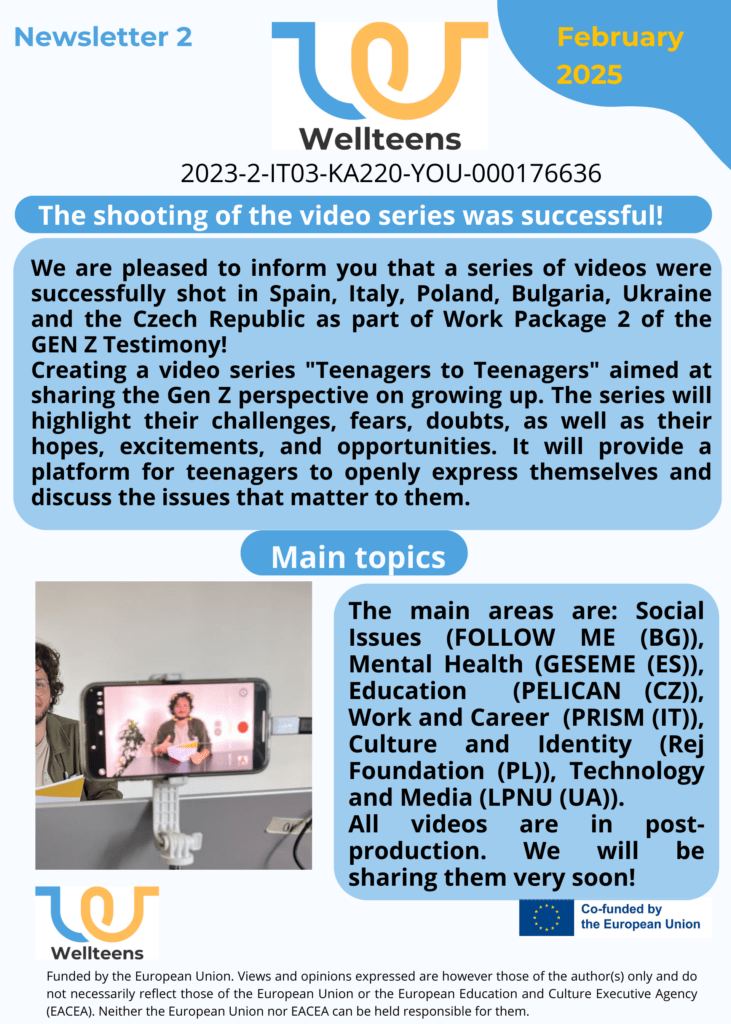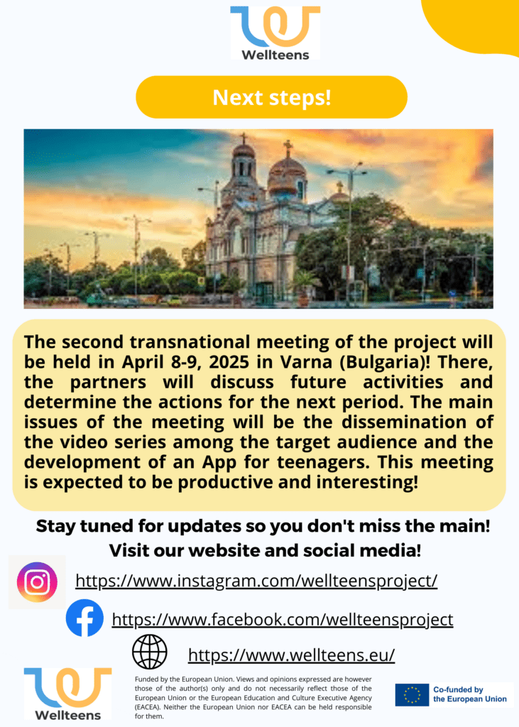 The PELICAN Language School will work in an international team on the outputs of the WELLTEENS project. The team consists of specialists and experts from six European countries – Italy, Poland, the Czech Republic, Bulgaria, Spain and Ukraine. These are the following organizations: