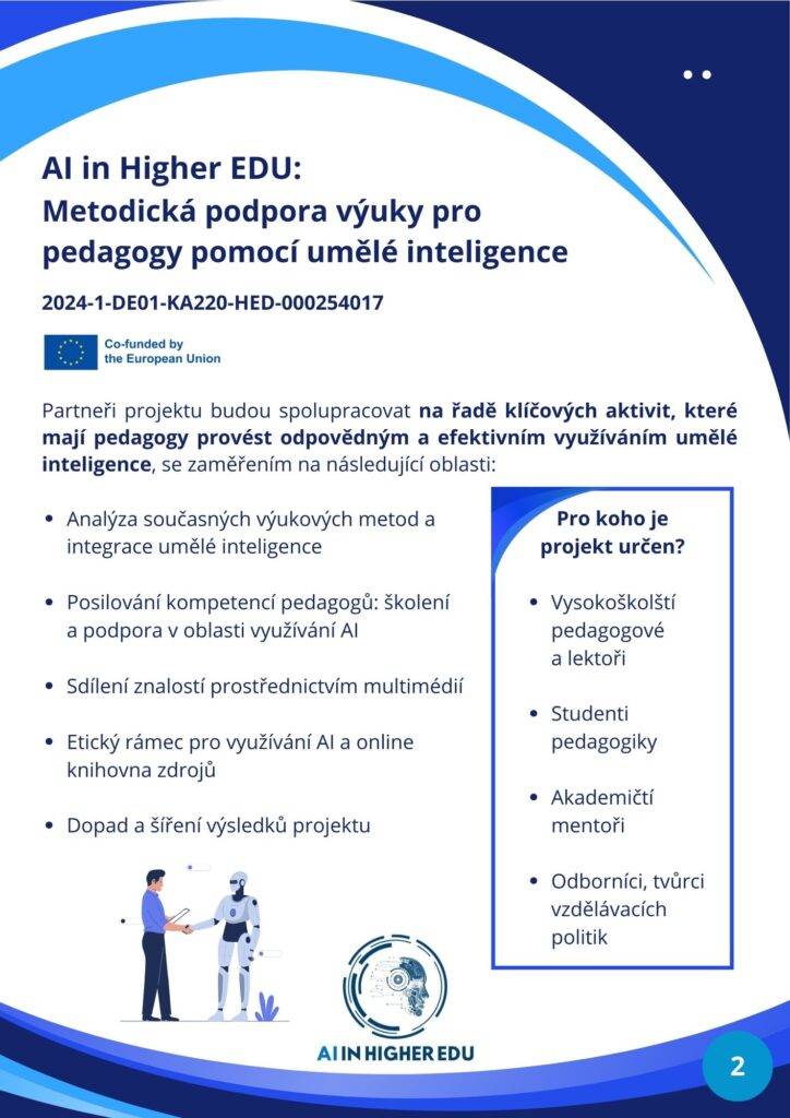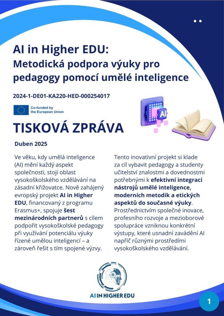 S rostoucím vlivem umělé inteligence (AI) ve všech oblastech společnosti čelí vzdělávací sektor zásadní výzvě – jak integrovat AI do výuky smysluplně, eticky a efektivně. Nový evropský projekt AI in Higher Education, financovaný z programu Erasmus+, si klade za cíl poskytnout vysokoškolským pedagogům nástroje, metodiky a podporu, které jim umožní využívat AI jako přirozenou součást moderní výuky.