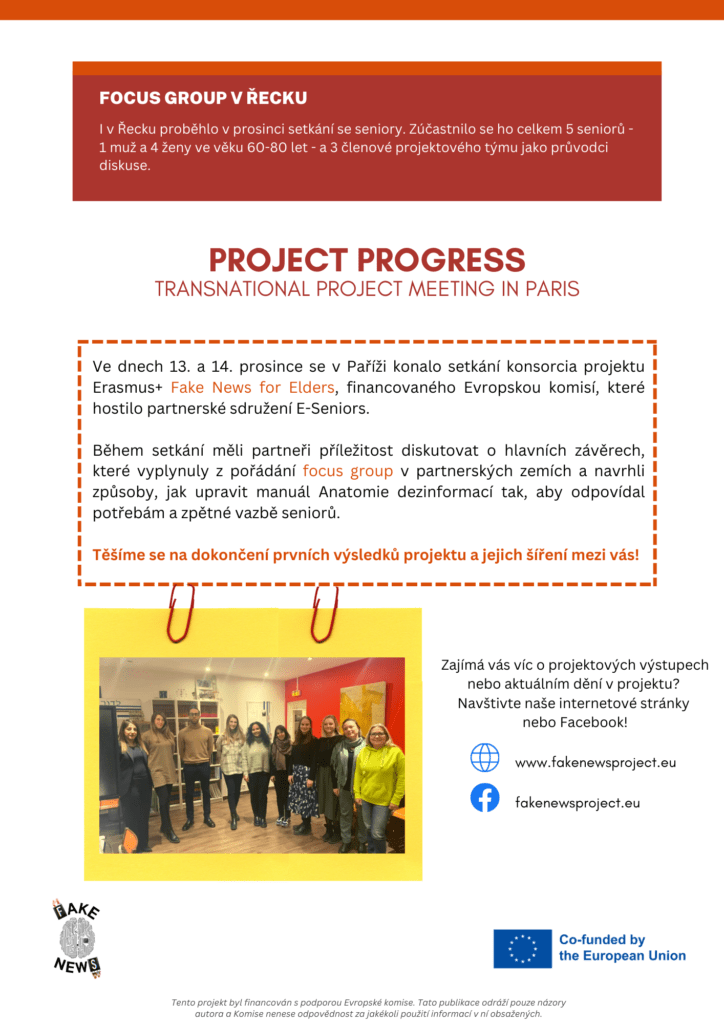 Projekt FakeNews&Elders začal v únoru 2022 a během jeho dvouletého trvání budou odborníci a partneři pracovat na čtyřech hlavních výstupech.