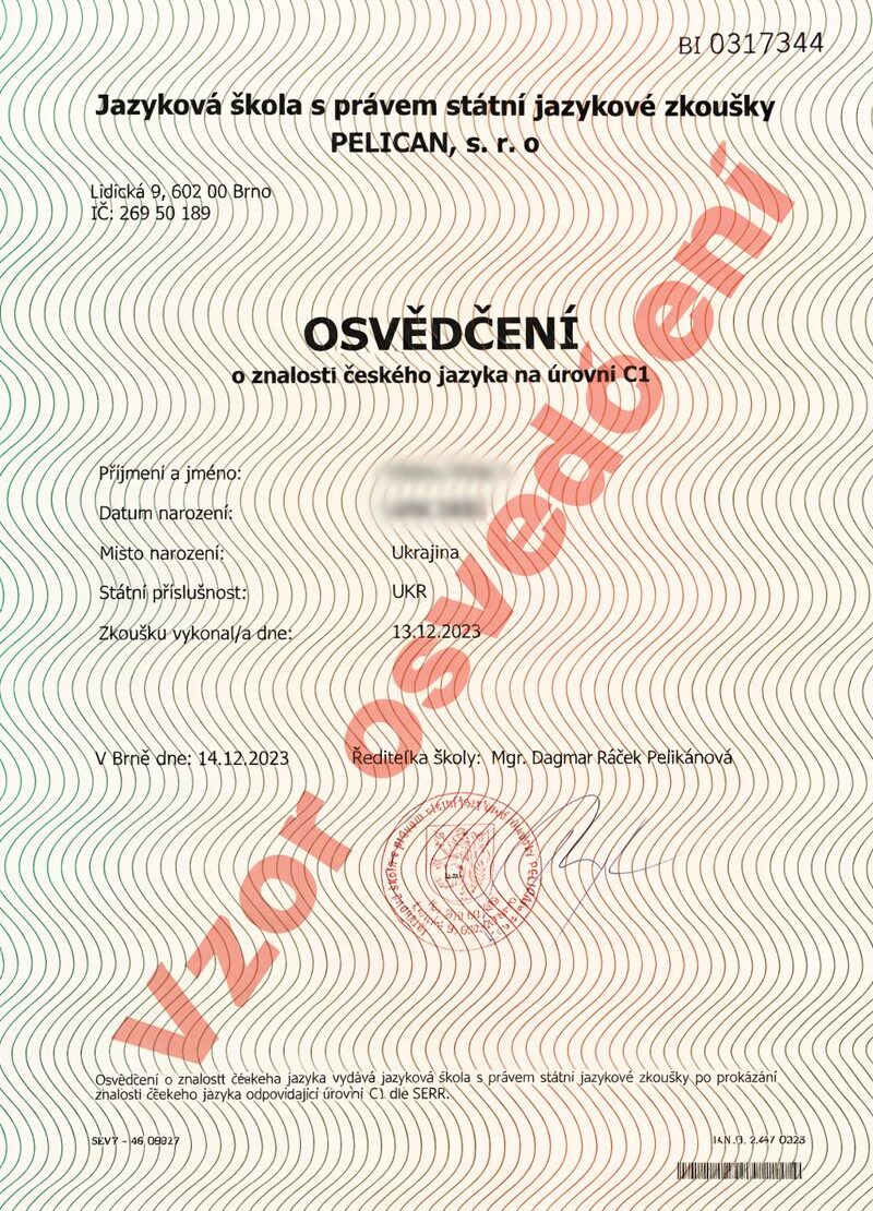 Jsme jazyková škola s právem státní jazykové zkoušky, proto v PELICANu můžete absolvovat mimo státních jazykových zkoušek na úrovních B2 a C1 i  interní jazykové zkoušky z češtiny na úrovních B1, B2 a C1.